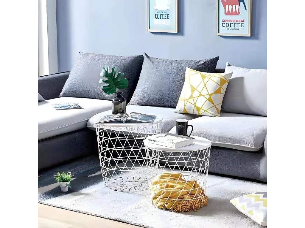 Pratique, grâce aux plateaux amovibles, ces tables se transforment en paniers de rangement (livres, coussins…).