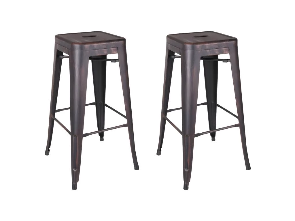 Lot de 2 Tabourets Hauts Métalliques Noir Vieilli H76.5cm Bobby.