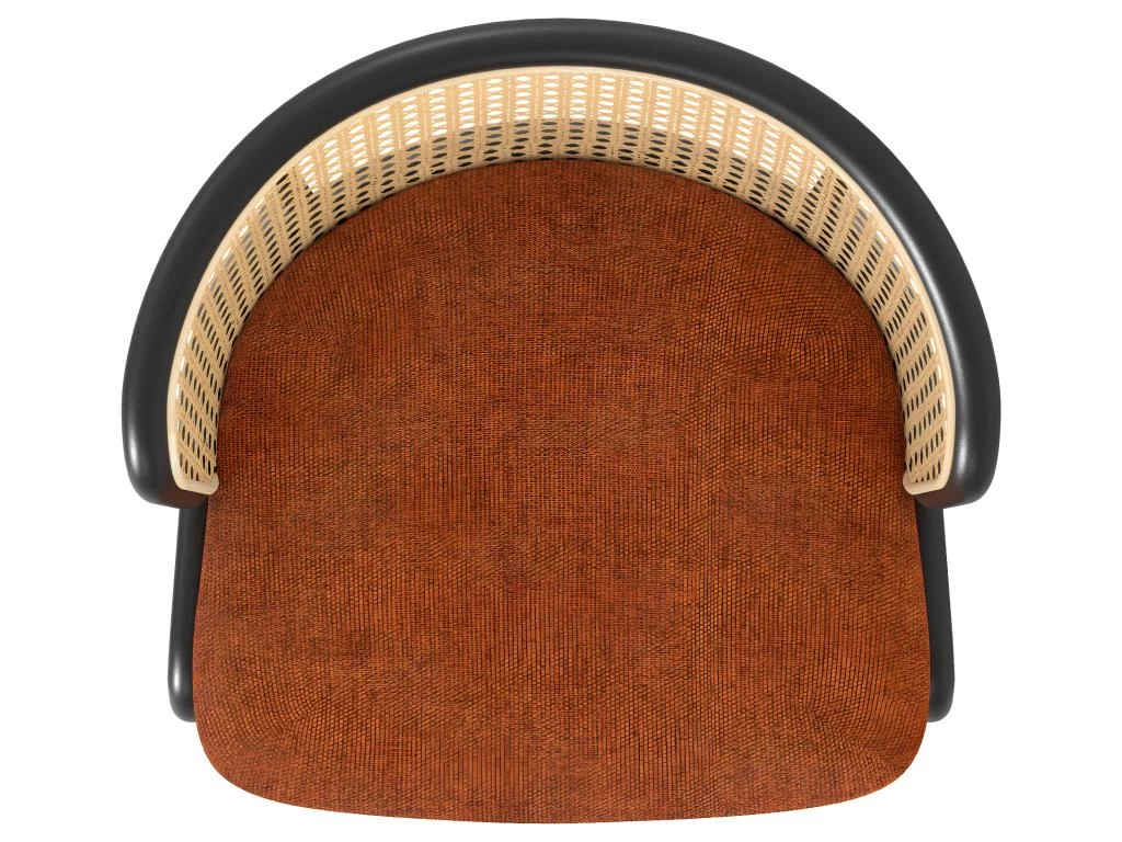 D’une allure rare, cette chaise attire par sa personnalité. Elle est simple à adopter, même dans un espace un peu réduit. Le cannage a en effet la capacité d’alléger une assise. Le cannage naturel se marie à merveille avec le métal, la touche brique apportant encore plus de caractère à ce siège. Dans un salon ou une salle à manger, elle va devenir un point central de votre intérieur. Elle convient à toutes les atmosphères et est facile à associer avec les coloris les plus variés.