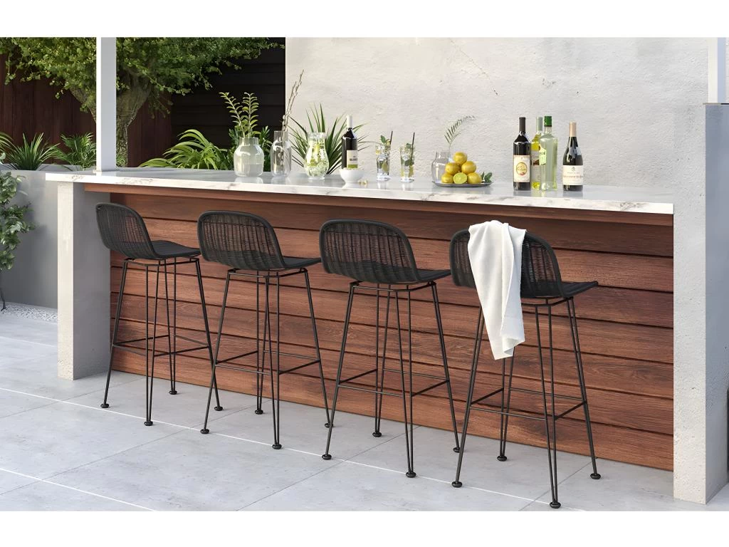 Elégante avec sa résine tressée et son piètement en métal noir, notre chaise de bar mi-hauteur Jigani noire 76 cm (lot de 2) vous ravira par ses dimensions L 44,5 x P 46 x H 99,5 cm et son allure élancée. Vous apprécierez le détail de ses pieds dotés d’une base qui protègera votre sol.