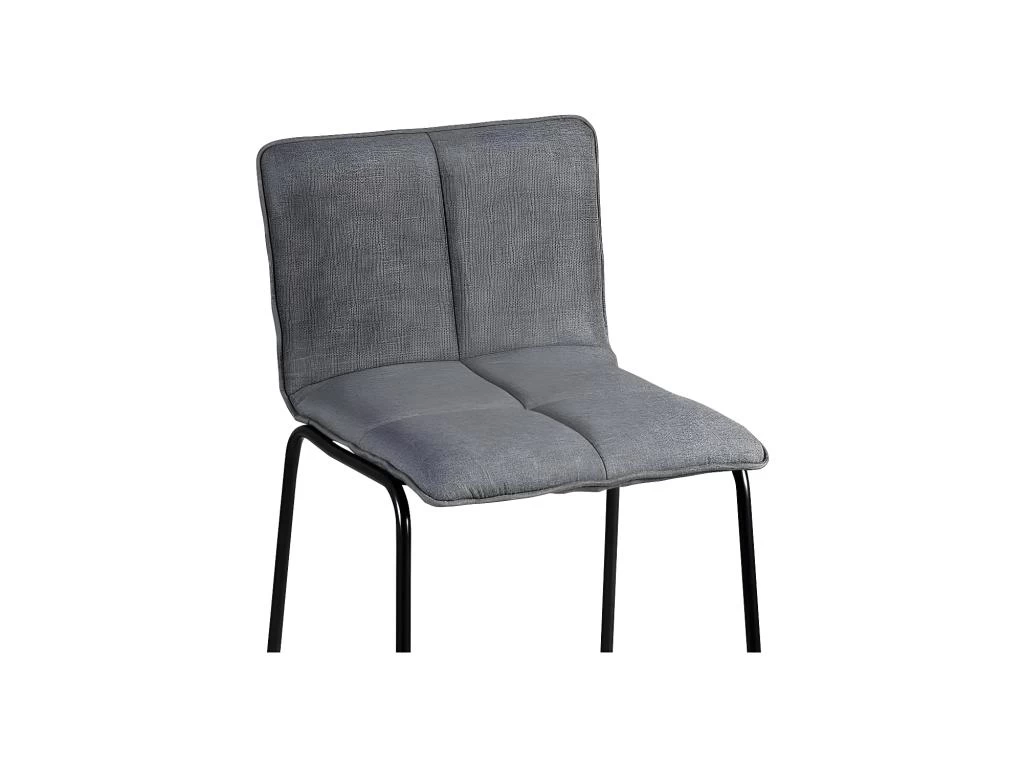 L’ensemble assise/dossier en tissu Gris est parfaitment mis en valeur par le piétement filiforme en métal noir et par la finition passe poils.