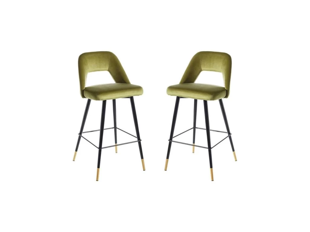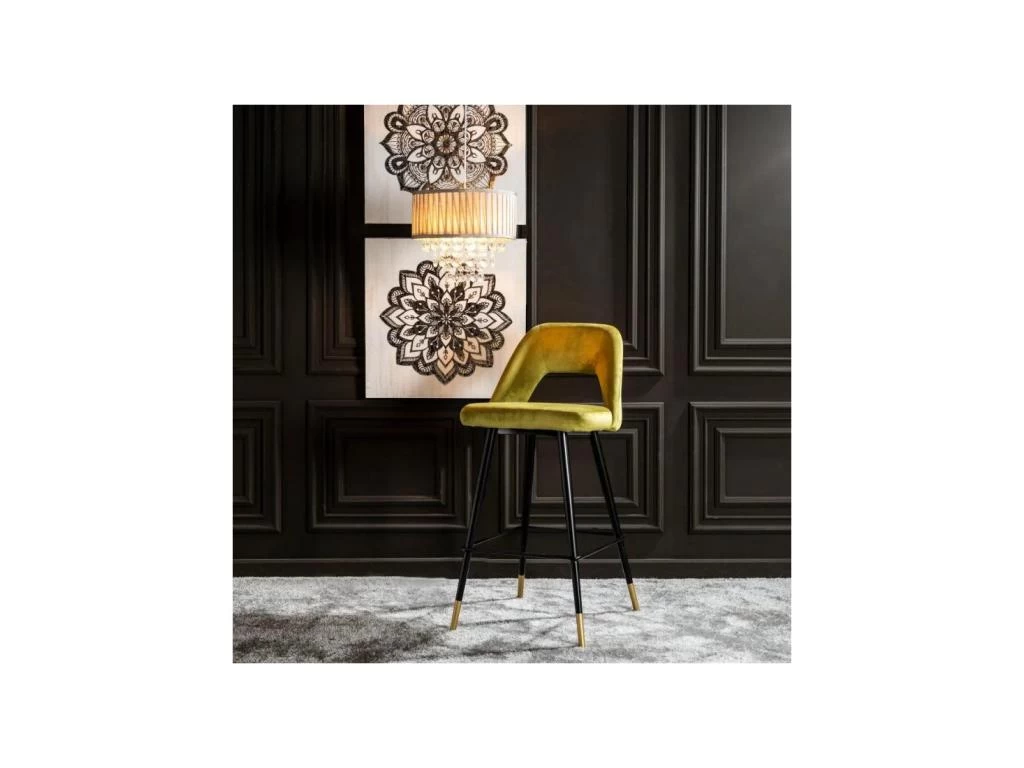 Ce duo de chaises hautes propose une caracasse au look très nettement inspiré des meubles Vintage et Art nouveau délicatement mise en valeur par un tissu Velours teinte Vert, original et agréable.