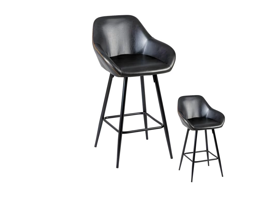 Proposant un revêtement similicuir copmété par un piétement en métal noir, ce duo de tabourets promet de faire forte impression dans cotre déco.