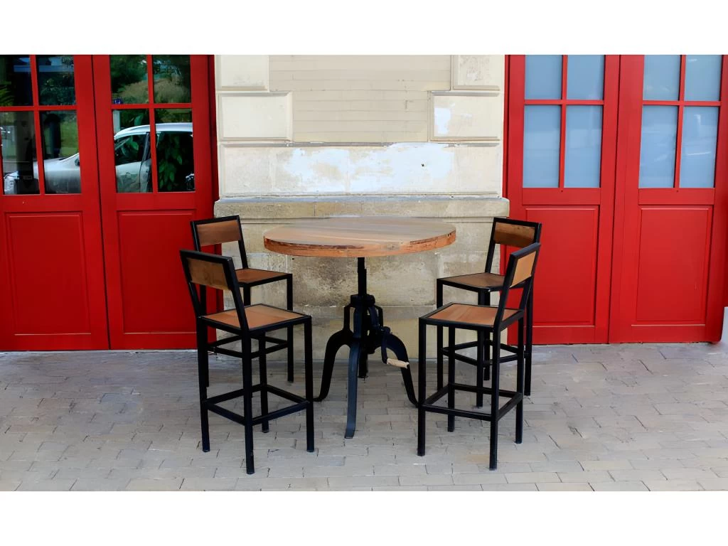 Tabouret de bar ou chaise haute pour mange-debout aux lignes sobres et esthétiques de style industriel.