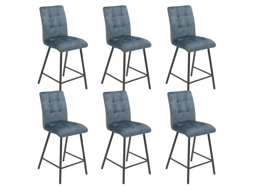 Lot de 6 Tabourets de Bar Capitonnés Bleu Gris de la gamme John.