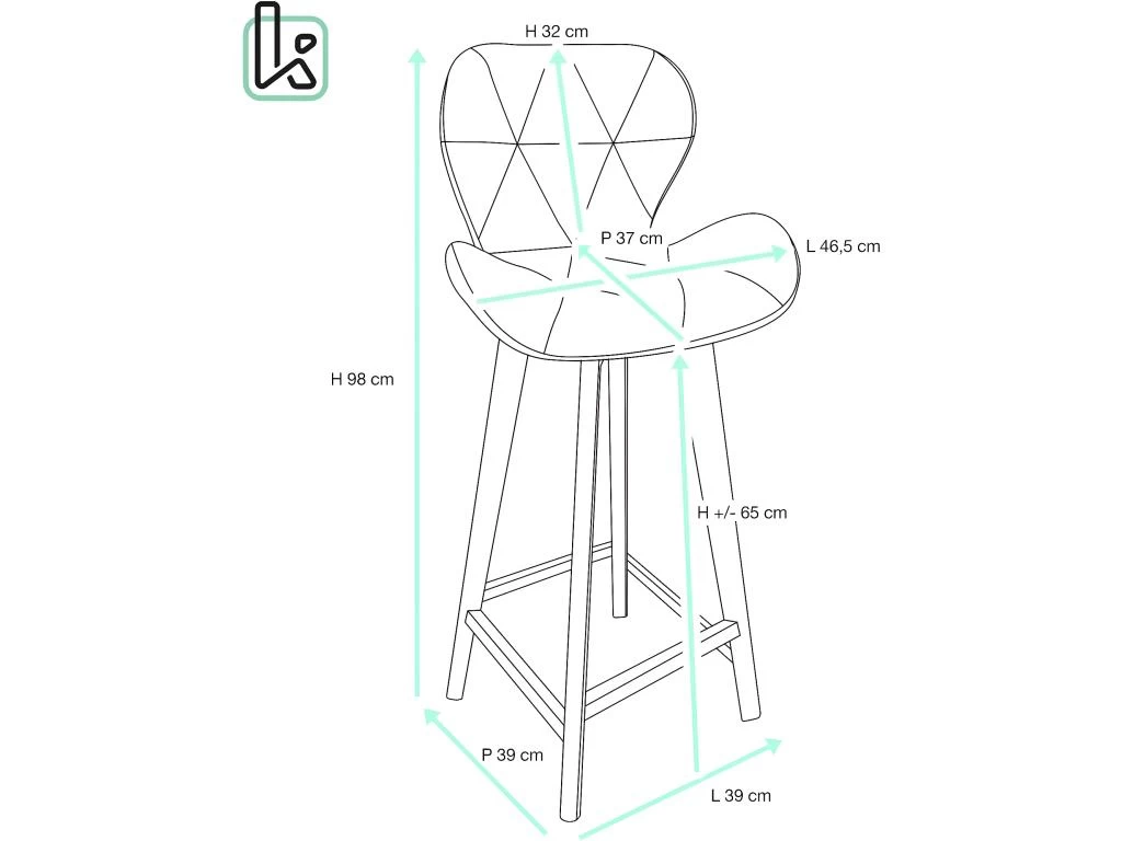 – Assise : 46,5 (L) x 37 (P) x 32 (D) cm