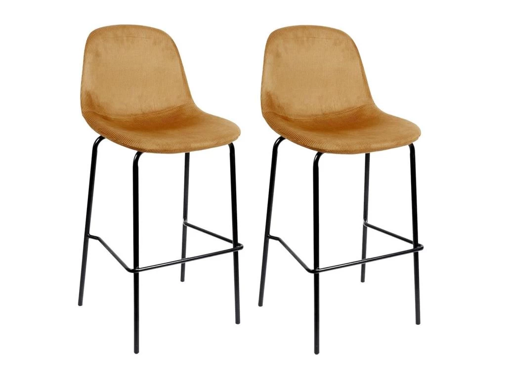 Lot de 2 Tabourets de Bar en Velours Côtelé Ocre de la gamme Konae.