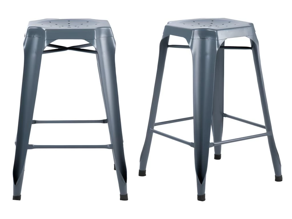 - PRODUIT : Lot de 2 tabourets de bar en métal gris avec perforations sur l’assise METALICA.