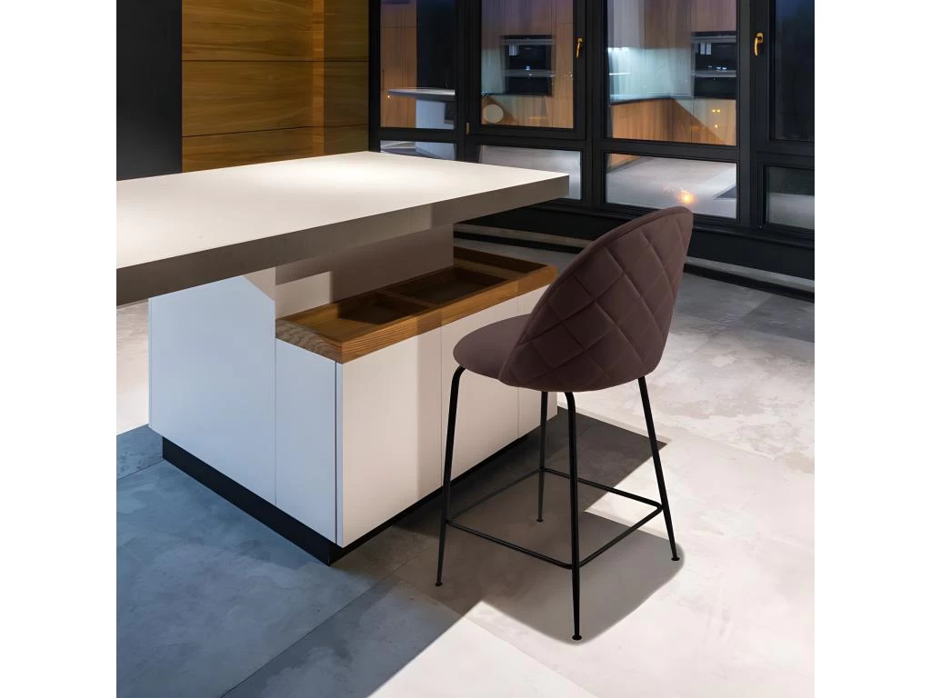 De splendides chaises de bar au style moderne chic, qui offriront une ambiance raffinée et épurée. Le design sobre du siège vient s’associer avec un piètement en métal noir, pour ajouter une touche industrielle à l’ensemble. On aime leur revêtement en velours tout doux, les courbes enveloppantes et l’assise rembourrée pour un maximum de confort. Vêtues d’un très joli coloris marron, les chaises FARA donneront à votre intérieur une harmonie chaleureuse et élégante. Devant un bar dans la cuisine/salon ou en face d’un bureau dans une chambre, elles sauront embellir n’importe quelle pièce selon vos préférences. Existe aussi en bleu, gris foncé, gris clair et jaune.