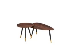 Très élégantes et délicieusement rétro, ces 2 tables basses BRANDO de MYCOCOONING von donner énormément de caractère à votre intérieur. L’une ronde et l’autre en oeuf ovale, elles dispensent un esprit art déco très tendance. Pour un gain de place instantané, ces 2 tables gigognes s’empilent facilement. Les pieds inclinés et effilés de ces 2 tables possèdent des extrémités dorées, ce qui signe leur raffinement. Seules ou ensemble, décorées d’un vase ou pour y déposer des boissons et magazines, ces tables gigognes ne manquent pas de charme.