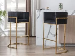 Lot De 2 Tabourets De Bar En Velours Et Acier Inoxydable – Noir Et DorĂ© – PERIA De Pascal MORABITO