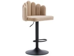 Lot De 2 Tabourets De Bar – RĂ©glable En Hauteur – Dossier En Forme De PĂ©tale – Velours – Beige