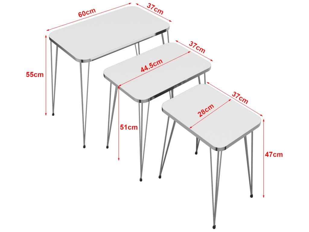 1 x set de 3 tables de chevet (de différentes tailles)