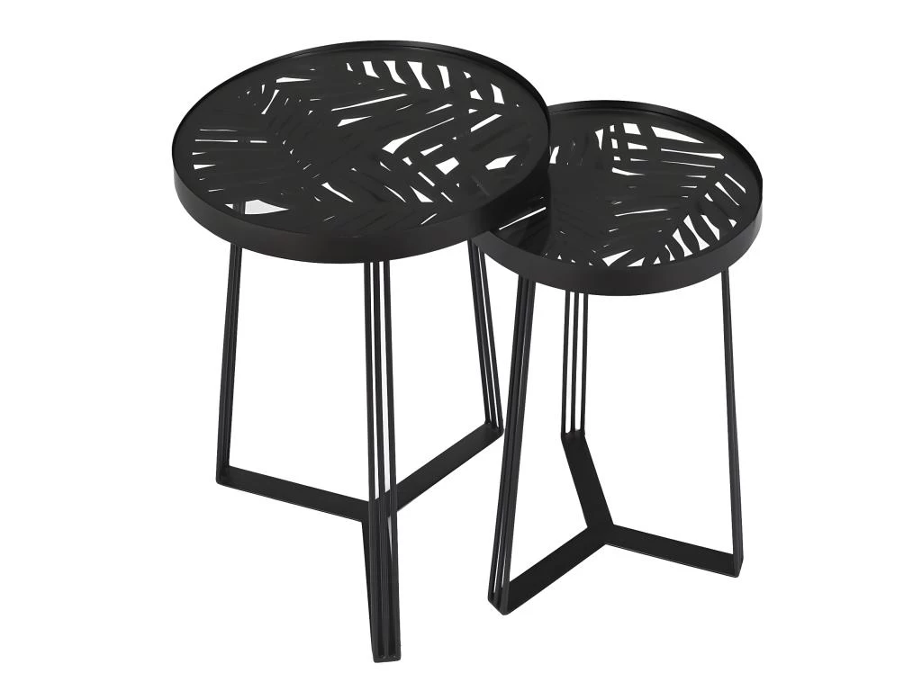 Tables Gigognes Noires Motif Feuilles Sova.