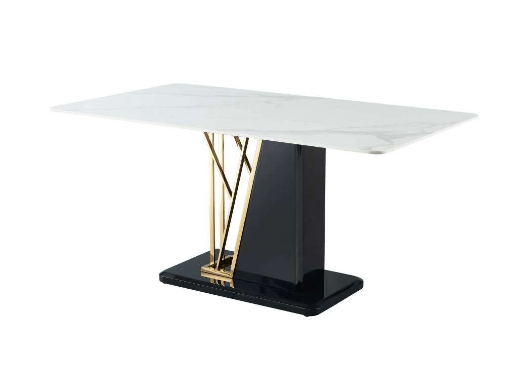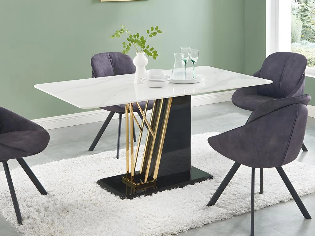La solidité de son plateau en céramique et la beauté de sa finition effet marbre font de BALLARAT une table à manger idéale pour aménager votre salle à manger ou votre cuisine. Le piètement noir et doré en MDF apportera la touche déco qui fera de cette table tricolore, une pièce maîtresse pour votre décoration. N’hésitez plus et profitez des 6 places offertes par la table BALLARAT !