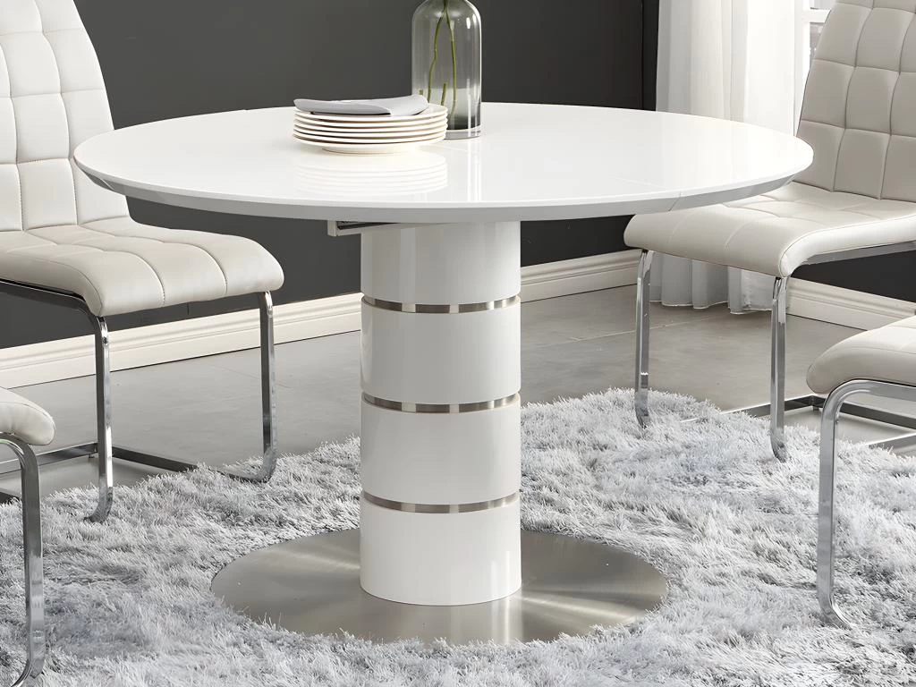 L’alliance du MDF laqué blanc et du métal inoxydable s’intègrera parfaitement à un intérieur design. Pour renforcer ce style, n’hésitez-pas à associer cette table à des chaises cantilever.