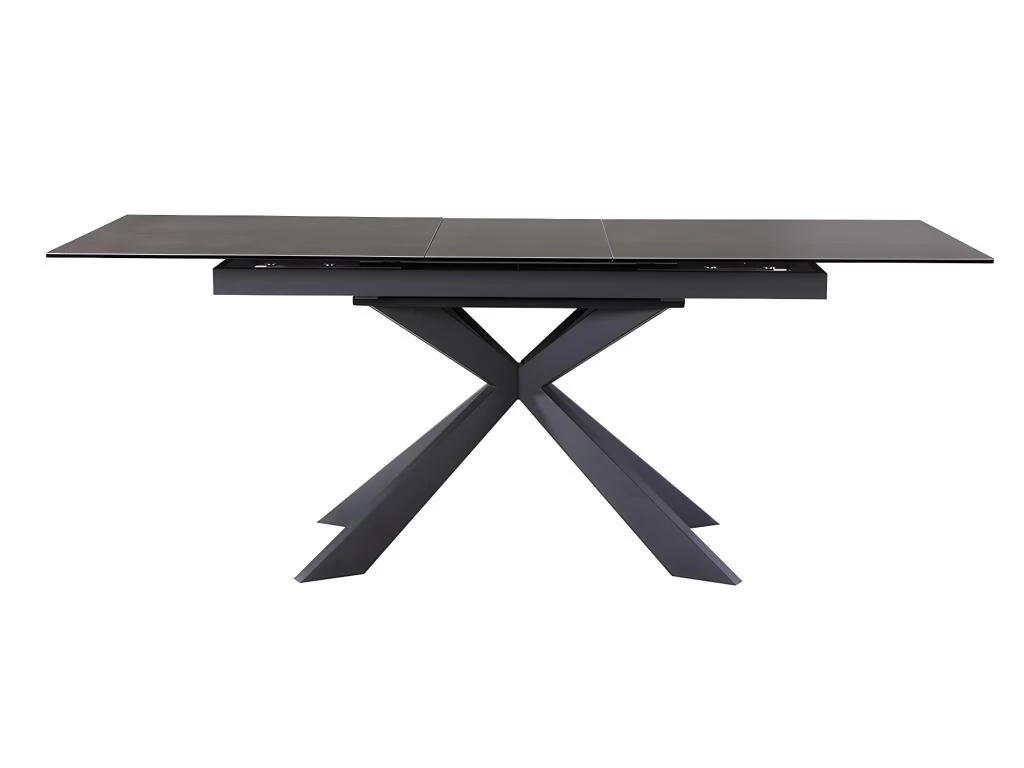 Conçue à partir de matériaux robustes et élégants cette table allie parfaitement la qualité et le design. Ses pieds croisés en métal noir lui confèrent une grande stabilité et une touche d’originalité. Son plateau en céramique, avec son support en verre trempé, lui apportent charme et solidité.