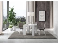Table Extensible Portefeuille 90×90/180 Cm Everyday Libra Frêne Blanc Cadre Anthracite