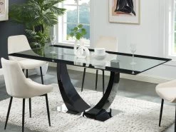Table à Manger 8 Couverts En Céramique Et Métal – Effet Marbre Blanc Et Noir – MIRESA