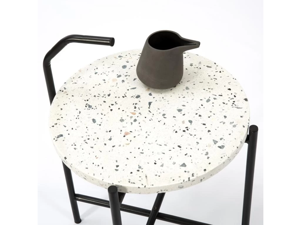 - Matériel:Plateau en Terrazo Blanc et pieds métalliques en Noir Mat.