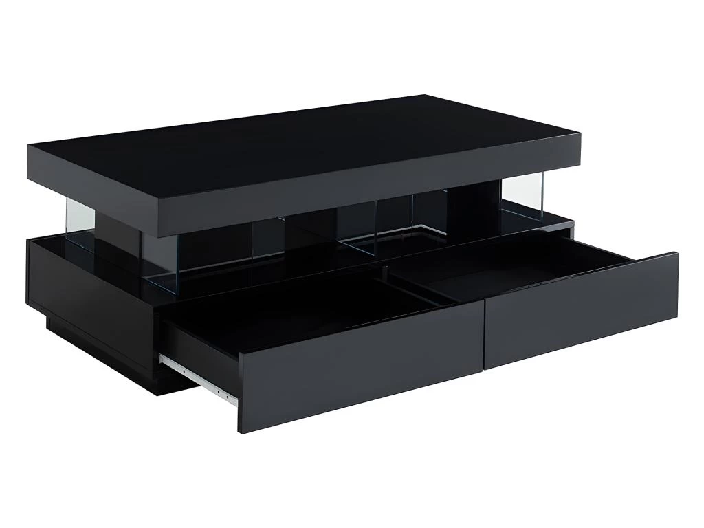Très fonctionnelle grâce à ses deux niches et deux tiroirs, cette table basse FABIO se démarque aussi par ses LEDs multicolores, qui en font un véritable élément de déco design et audacieux !