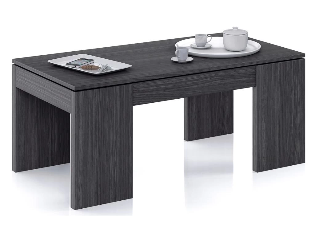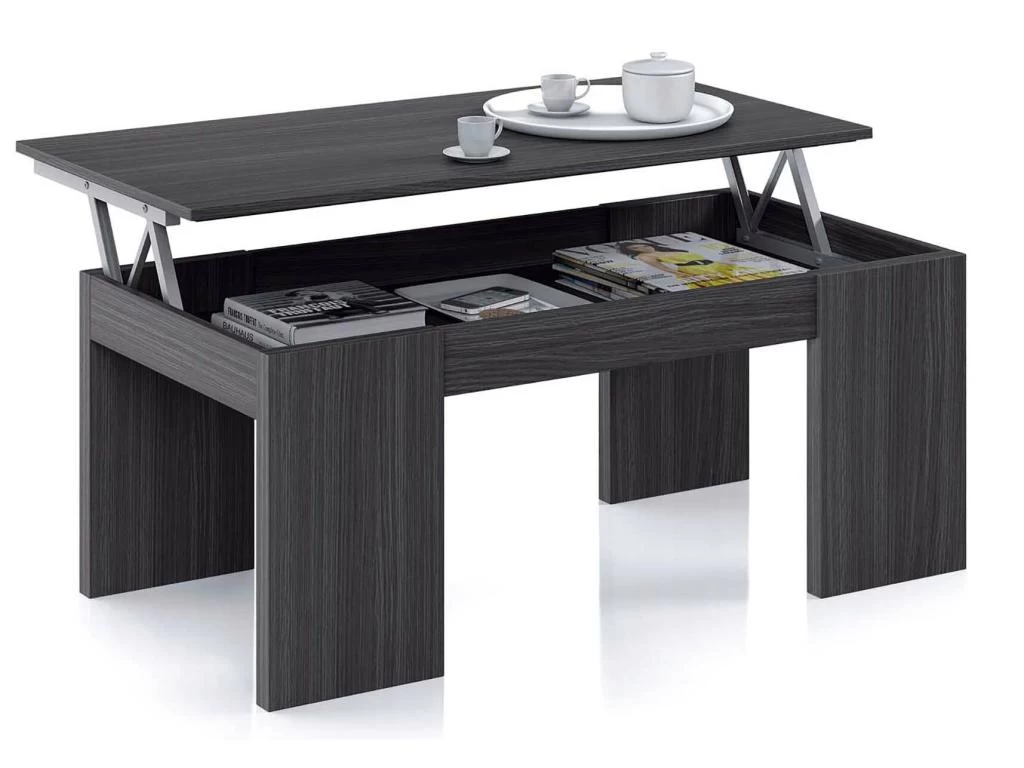 Table Basse à Plateau Relevable coloris gris cendre avec une finition de haute qualité. Moderne et très pratique. Livrée en kit . Dimensions : 100 x 50 x 42 cmHauteur table élevé : 54 cm. Matière : mélamine. Coloris : gris cendre