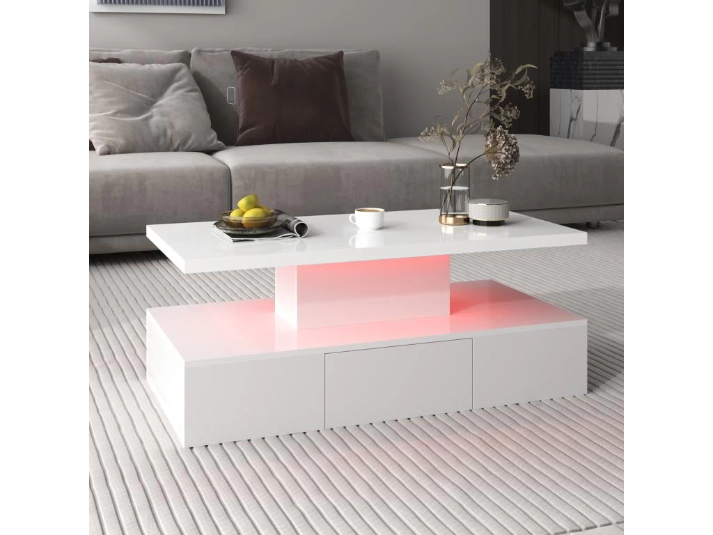 Beaucoup d’espace : cette table comporte deux niveaux pour les tasses à café, les décorations et les livres, le tout à portée de main, et des LED intégrées pour égayer votre salon.