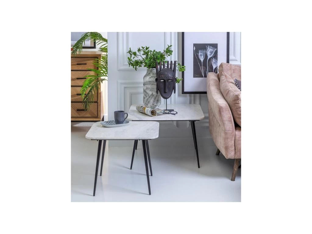 Le mariage d’un piétement en métal laqué noir et d’un plateau en véritable marbre blanc de Carrare confère à cette table basse une qualité perçue réellement valorisante.