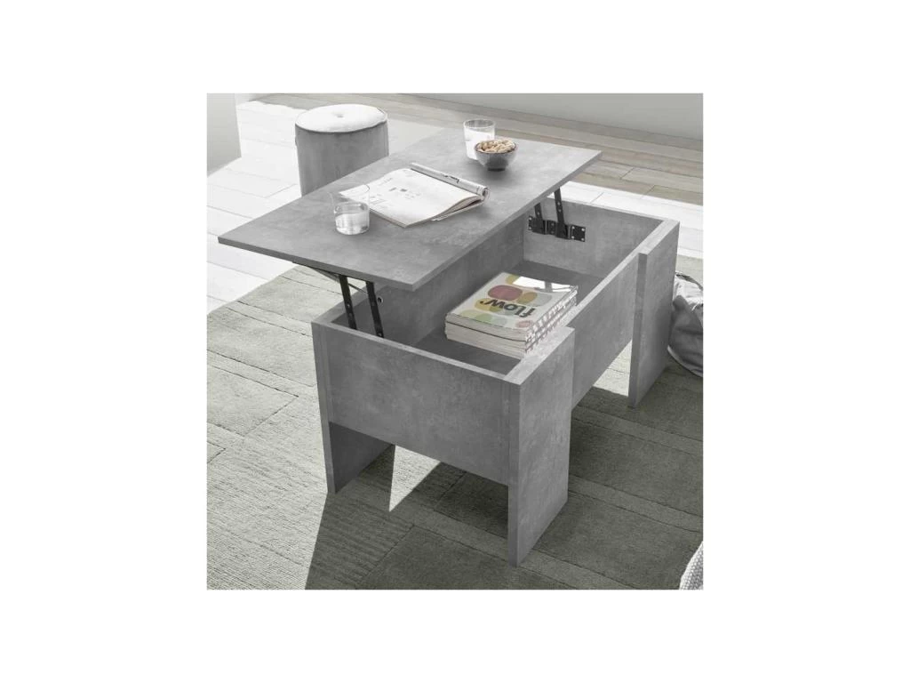 Gagnez de la place dans votre salon avec cette table basse relevable au design contemporain et au revêtement original.