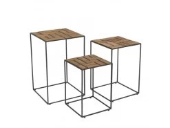 ALIDA – Set De 3 Tables D’appoint Gigogne Plateaux Bois Teck Recyclé Structure Métal Noir
