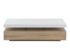 Table Basse Avec 2 Plateaux Relevables Et 1 Porte – MDF Et Acier – Naturel Et Noir – KAYLINO