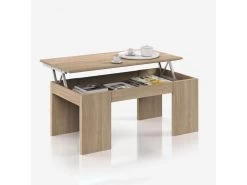 Table Basse Relevable Coloris Effet Bois – Hauteur 47-58 X Longueur 100 X Profondeur 50 Cm