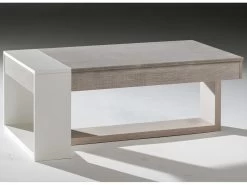 Table Basse Relevable Coloris Chêne Doré/ Marbre – Hauteur 47-58 X Longueur 100 X Profondeur 50 Cm