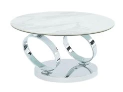 Table Basse Avec Plateaux Pivotants – Céramique, Verre Trempé Et Métal – Effet Marbre Blanc – JOLINE