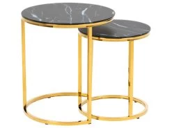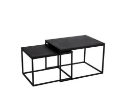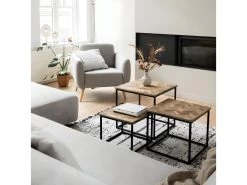 Bobokan – 3 Tables Basses Gigognes Carrées En Métal Et Teck Recyclé – Couleur – Bois Clair / Noir