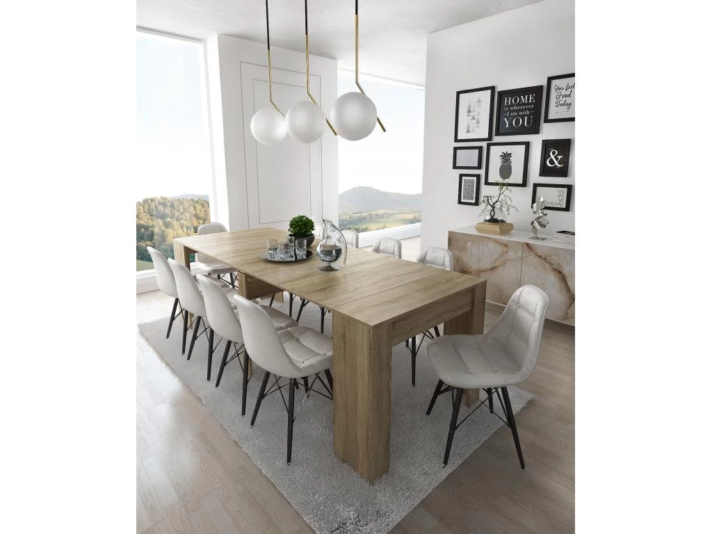 La console extensible est une fantastique table a manger a 5 positions qui vous permettra d’aller de 50 cm a 237 cm de long. Grace a sa capacite d’extension, il peut etre utilise a plusieurs fins : Par exemple, vous pouvez l’utiliser comme table d’entree, de cuisine ou de bureau et lorsque vous avez toute la famille a la maison, vous pouvez l’etirer et l’utiliser comme table de salle a manger. D’un design simple et elegant, il vous permettra d’adapter la table a toutes les pieces de votre maison. Vous pouvez transformer cette table exceptionnelle pour 10 personnes et organiser des dejeuners et dîners sans craindre de manquer d’espace.