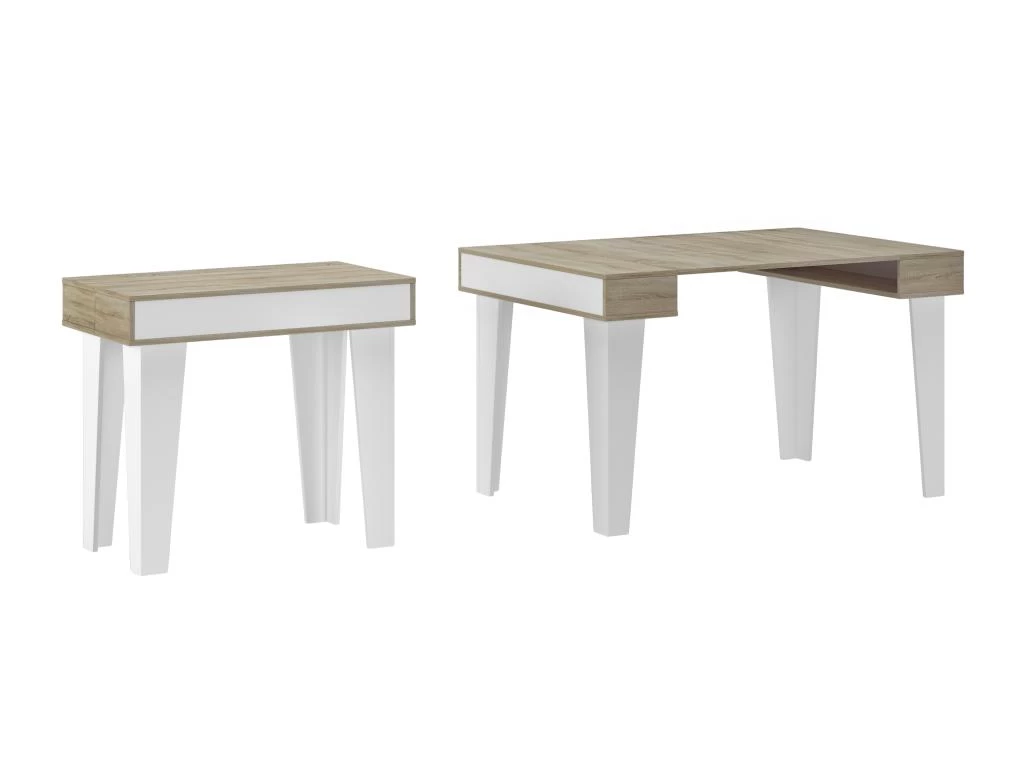 La console extensible est une fantastique table de salle a manger extensible avec 3 positions, vous permettant de vous deplacer de 52 cm a 140 cm de long. Grace a sa capacite d’extension, il peut etre utilise de plusieurs façons : par exemple, vous pouvez l’utiliser comme table d’entree, table de cuisine ou bureau, et lorsque vous avez toute la famille a la maison, etendez-le au maximum et utilisez-le comme table a manger. D’un design simple et elegant, il vous permettra d’adapter la table a n’importe quelle piece de votre maison. Vous pouvez transformer cette table etonnante pour 6 convives et organiser des dejeuners ou des dîners sans crainte de l’espace. Les extensions de table ne sont pas stockees a l’interieur de la console.