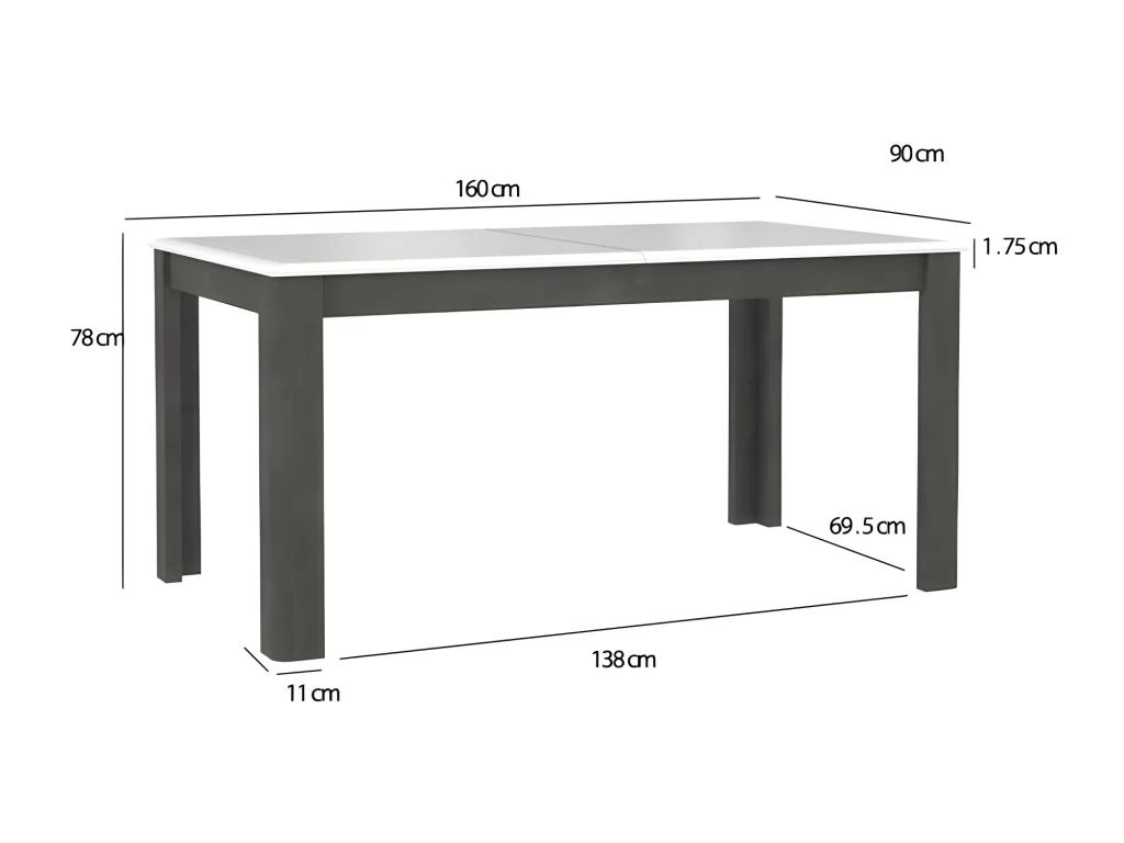 - DIMENSIONS GENERALES APPROXIMATIVES : longueur 160 cm (206 cm avec rallonge) x hauteur 78 cm x profondeur 90 cm