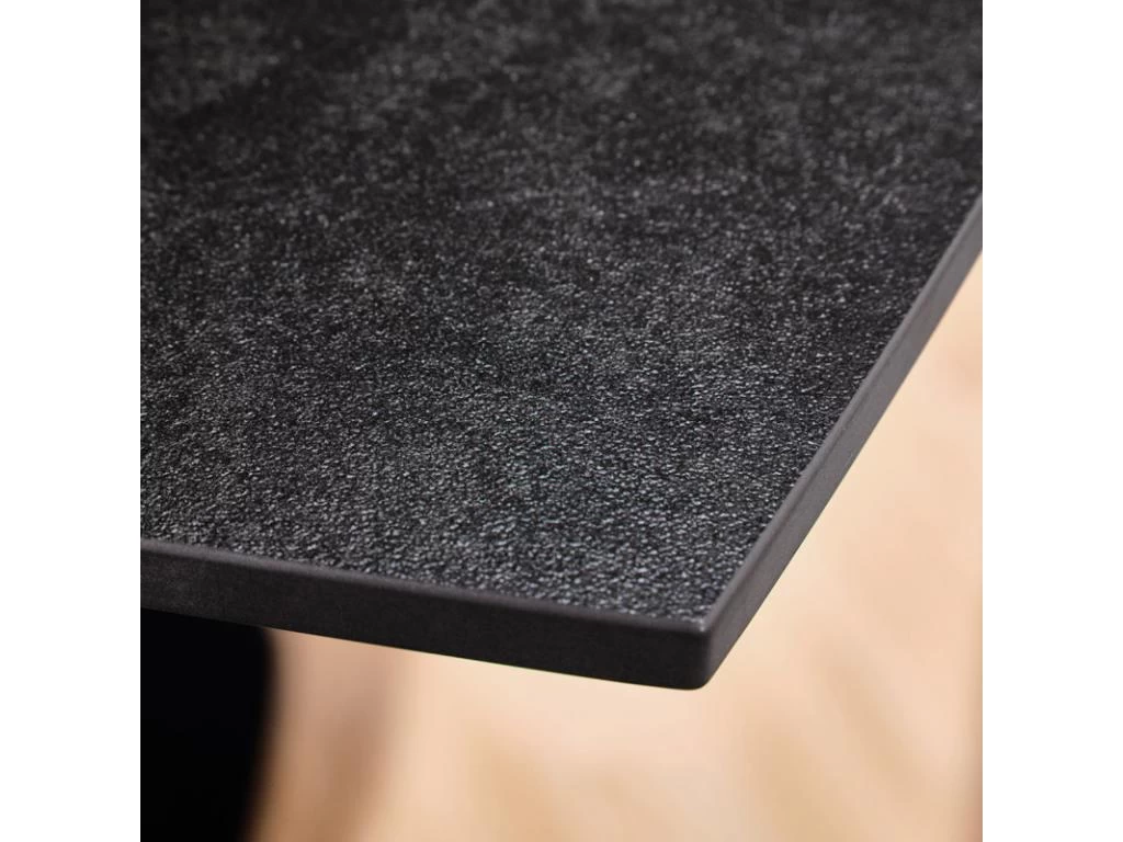 - COMPOSITION : Plateau en céramique gris foncé (10 mm). Structure et piètement en métal noir.