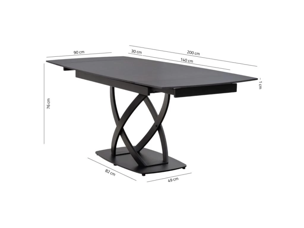 Optez pour la table de repas extensible 140/200 cm plateau céramique gris foncé MORIARTY.