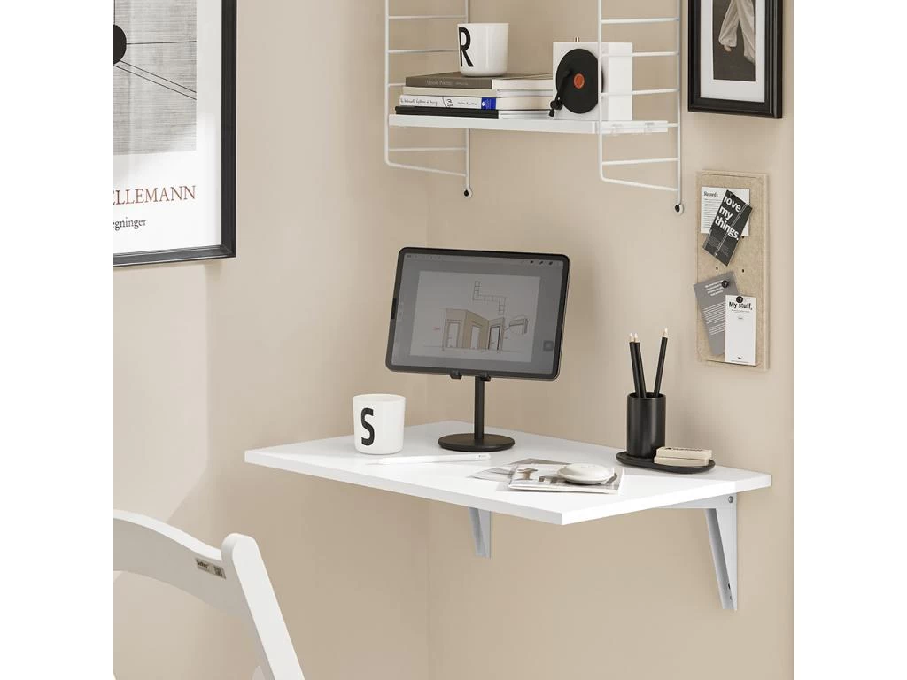 Matériau : plateau en bois MDF laqué blanc, support en métal.