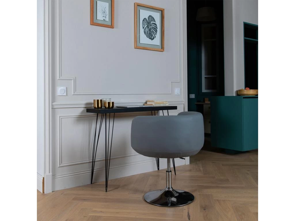 Le tabouret de bar de la gamme NOLAN est réglable en hauteur, comportant un dossier et habillé d’un revêtement en simili de qualité. Son design élégant et fonctionnel élève le confort à un tout autre niveau, ce qui le rend parfait pour un look décontracté et chic dans votre intérieur. Son assise rembourrée et sa base chromée résistante vous offrent stabilité et confort en toute occasion. Le siège aux formes arrondies pivote à 360° et comporte des accoudoirs dans la continuité du dossier qui favorise un soutien supplémentaire. Le tabouret de bar devient ainsi idéal pour prendre vos repas en toute tranquillité, siroter un cocktail avec vos amis ou simplement vous détendre chez vous.