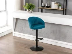 Lot De 2 Tabourets De Bar En Tissu Et Métal – Bleu – DORALIZ