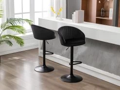 Lot De 2 Tabourets De Bar En Velours Et Métal – Noir – DORALIZ