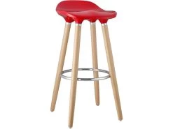 BIBENNE – Lot De 2 Tabourets De Bar Rouge Et Pieds Aspect Bois