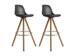 OSLO Lot De 2 Tabourets De Bar Noir Laque + Pieds Hetre Massif – Contemporain – L 39 X P 40 Cm