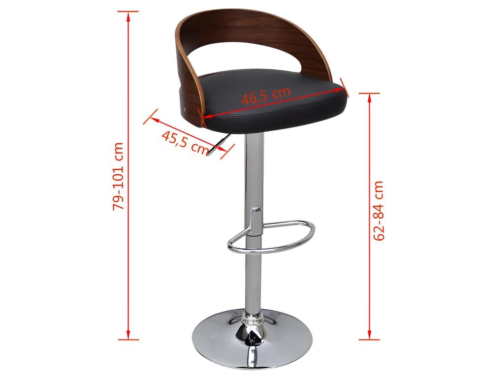 L’assise, recouverte de cuir artificiel de haute qualité, est confortablement rembourrée. Le cadre en bois cintré contribue à leur beauté et leur style unique. Le cadre métallique est très robuste, tandis que le repose-pied intégré et le design ergonomique augmentent le confort d’assise.